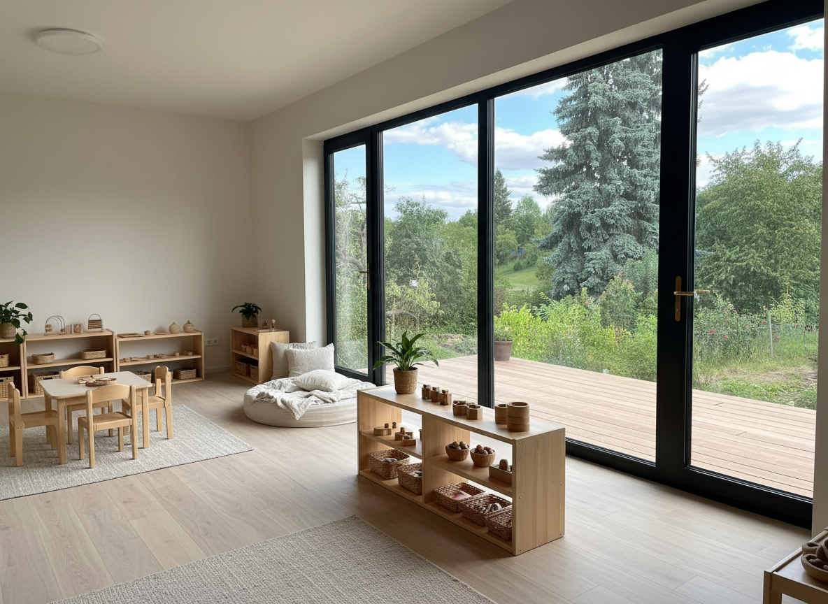 Skupinka sídlí v zbrusu nové budově přizpůsobené potřebám těch nejmenších. Vytvořili jsme prostředí bezpečné, přehledné a útulné – s ohledem na Montessori principy samostatného učení.